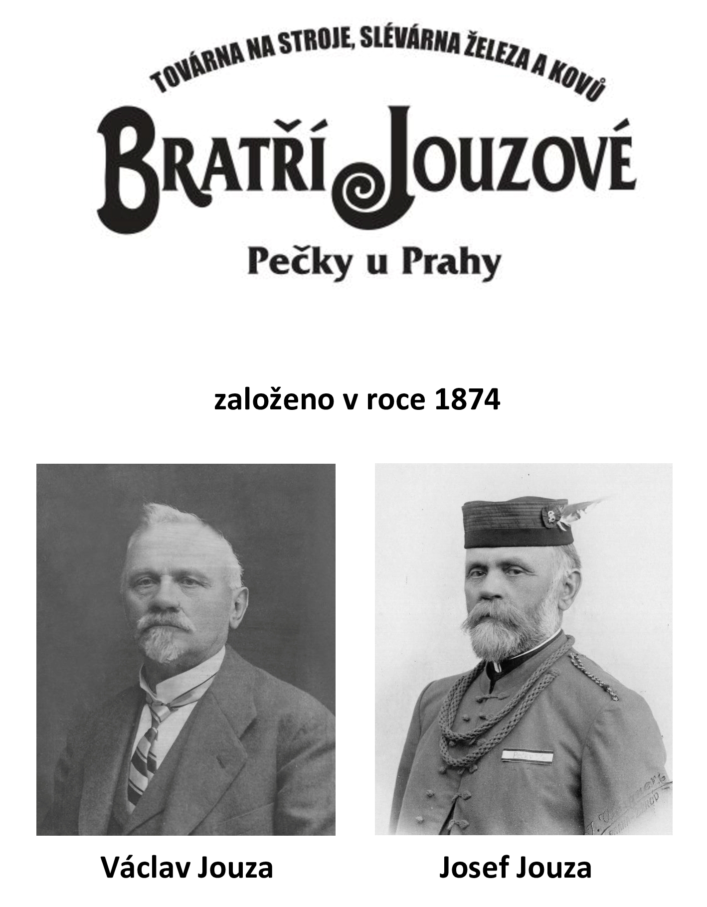 Firmu BRATŘÍ JOUZOVÉ v Pečkách na dráze založili v roce 1874 bratři Josef a Václav Jouzovi. Josef Jouza se narodil 16. března 1946 a Václav Jouza 24. května 1851 v Nesměni u Zásmuk. Jejich otec Jan Jouza měl hospodářství s vlastním kovářem pro úpravu nářadí, kování koní, zhotovování vozů atd. Synové při těchto pracích pomáhali, a tak se také řemeslu naučili. Prvních pět secích strojů vyrobil Josef Jouza společně se 4 dělníky v Chotuticích č. 31 ve stodole svého otce, který se sem s rodinou přestěhoval. Protože v této výrobě viděl Josef velkou budoucnost koupil pozemek v Pečkách a postavil první dům, v kterém bydlel a také měl strojní dílnu. V té době dával bratr Václav přednost starosti o hospodářství ve Vítězově. Zde zjistil velkou výhodu secích strojů hlavně u řepy, která se tou dobou sela ručně. Bylo to pracné a vyrostlé trsy se jen těžce jednotily. Václav sel již secím strojem. Semena upravil tak, že je rozdrcené obalil v ornici s hnojivem. Tímto způsobem se řepa velice dobře sela a jednotila a výnos byl několikanásobný. Získané finanční prostředky vložil do výstavby dalších budov továrny. V následujících letech postavili bratři také vlastní slévárnu a rozšířili sortiment o mlátičky, žentoury, čističky obilí, výfukové řezačky, benzínové i naftové motory, soustruhy a také cestovní kola. Z malé dílny se za několik let stala velká prosperující strojírna se slévárnou. Firma Bratří Jouzové se velkou měrou podílela na průmyslovém rozkvětu města Pečky na konci 19. a v 1. polovině 20. století. Historicky ryze zemědělská oblast prošla v průběhu necelých padesáti let zásadní proměnou, jenž byla zapříčiněna především vystavěním železniční dráhy, na základě které začala v obci vznikat řada hospodářských podniků, které silně ovlivnily sociální, kulturní a ekonomický život v Pečkách.